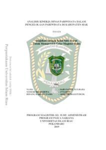 Nugraha, Said Faisal (2019) Analisis Kinerja Dinas Pariwisata Dalam Pengelolaan Pariwisata Di Kabupaten Siak. Masters thesis, Universitas Islam Riau.