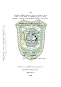 Erwin, Erwin (2019) Kepastian Hukum Terkait Penggunaan Tanah Milik Negara Yang Dikelola Oleh Masyarakat Adat Kecamatan Hulu Kuantan Kabupaten Kuantan Singingi. Masters thesis, Universitas Islam Riau.