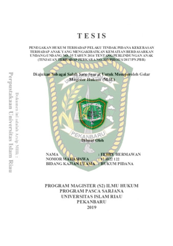 Hermawan, Febry (2019) Penegakan Hukum Terhadap Pelaku Tindak Pidana Kekerasan Terhadap Anak Yang Mengakibatkan Kematian Berdasarkan Undang-Undang No. 35 Tahun 2014 Tentang Perlindungan Anak (Tinjauan Terhadap Perkara No. 333/PID.SUS/2017/PN.PBR). Masters thesis, Universitas Islam Riau.