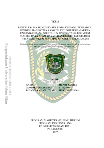 Zanita, Henri (2019) Penyelesaian Hukum Kasus Tindak Pidana Terhadap Pembunuhan Satwa Yang Dilindungi Berdasarkan Undang-Undang No 5 Tahun 1990 Tentang Konversi Sumber Daya Alam Hayati Dan Ekosistem (Studi Di Wilayah Hukum Pengadilan Negeri Pelalawan). Masters thesis, Universitas Islam Riau.