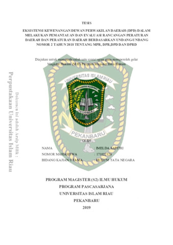 Sapitri, Imelda (2019) Eksistensi Kewenangan Dewan Perwakilan Daerah (DPD) Dalam Melakukan Pemantauan Dan Evaluasi Rancangan Peraturan Daerah Dan Peraturan Daerah Berdasarkan Undang-Undang Nomor 2 Tahun 2018 Tentang MPR, DPR,DPD Dan DPRD. Masters thesis, Universitas Islam Riau.
