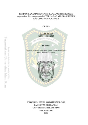 Hadiyanto, Hadiyanto (2021) Respon Tanaman Kacang Panjang Renek (Vigna Unguiculata Var. Sesquapedalis) Terhadap Aplikasi Pupuk Kascing Dan Poc Nasa. Other thesis, Universitas Islam Riau.